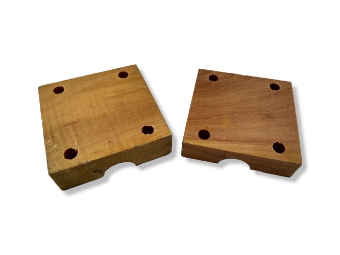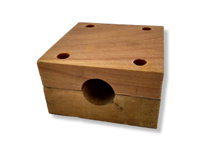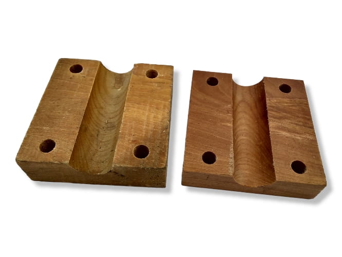 Dwuelementowa drewniana panewka, zabezpieczona specjalnym preparatem impregnującym i smarującym.