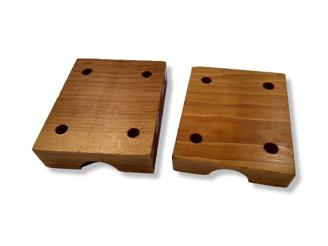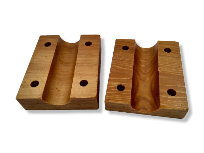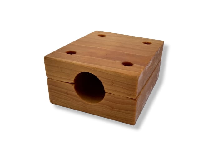 Dwuelementowa drewniana panewka, zabezpieczona specjalnym preparatem impregnującym i smarującym.